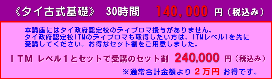 初めてタイ古式マッサージを学ぶ方や、個人サロンのメニューにタイ古式を加えたい方、もみほぐし店などのボディケアでタイマッサージを応用したい方のための基礎講座です。