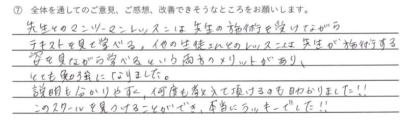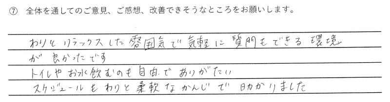 | 横浜タイマッサージスクールで受講された方の感想 |